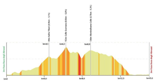 Trofeo Matteottiのコースは昨年と同じレイアウト。ペスカーラの15 kmの周回を13周し、合計195 km・獲得標高2500 mを走る。周回のキーポイントは、Via Tiberi(900 m、5.1%)、Colle Scorrano(600 m、5.8%)、Montesilvano Colle(700m、5.3%)の3つの上り。最後の登りの後にはテクニカルな下りがあり、ゴール前の2.5 kmは完全に平坦。フィニッシュはピアッツァ・ドゥーカ・デッリ・アブルッツィの長い直線に設けられていた。