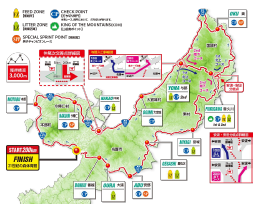 名護市中心部の21世紀の森体育館前を発着するコースは、海岸線をなぞるように本部半島を通過し、東シナ海沿いの海岸を北上。2度通過する普久川ダムへ向かう与那の登りを通過します。この与那の登りは約7kmで平均勾配4.8%であり、山頂にはKOMが設定されています。テクニカルなダウンヒル後、レースは太平王側の海沿いを北上し、沖縄本島最北端の辺戸へ向かいます。辺戸を通過後、東シナ海川の海岸を南下します。2度目の与那の登りを通過後、再びテクニカルなダウンヒルを経て海岸線を南下します。下りきった直後に始まる安波小学校前を通過する2km程の登り坂は平均勾配6%ほどあります。その後アップダウンをこなしながら海岸線を進み、慶佐次の先には1.5km平均勾配6.4%の登りと、1.2km平均勾配6.1%の登りが連続しています。最大の勝負どころとなるのは、残り9kmから始まる3.7km、平均勾配4%の登り坂です。2022年のプラデスは登り口から仕掛け独走、2023年の山本大喜はこの登り切り後の下りで飛び出しています。