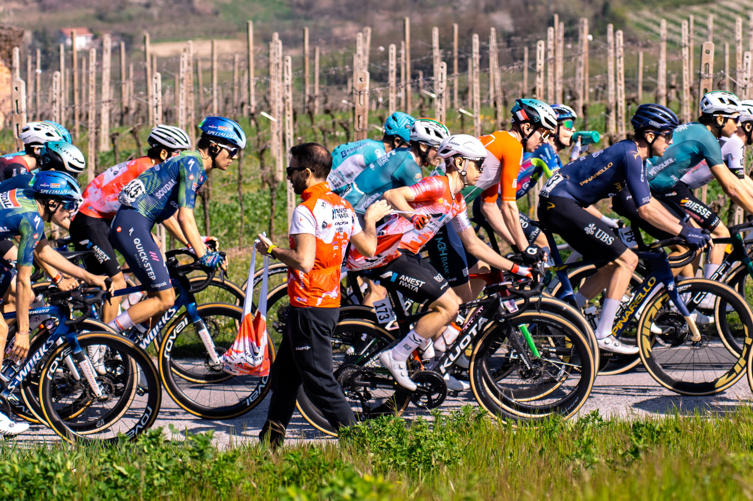 セッティマーナ・コッピ・エ・バルタリが開幕し、ニコロ・ガリッボが5位、フェデリコ・イアコモーニが6位に入った。トンマーゾ・ダーティも最終500メートルで集団内の接触に巻き込まれながら、先頭集団でフィニッシュした。この日の逃げは8人で構成され、終日コントロールされた展開となった。TEAM UKYOはフィニッシュまで残り10キロ地点に頂上を持つ最終登坂を前に、集団内で良いポジションを維持した。勝負はこの登りで決まることが早い段階から明らかであり、最後の上りスプリントがステージ優勝と最初のリーダージャージを左右する展開となった。バローロに向かう終盤、ダーティ、イアコモーニ、ガリッボはいずれも集団のトップ10圏内で好位置につけ、ダーティの勝利に向けたリードアウトを狙っていた。この好位置がチームにとって良い結果につながり、イアコモーニが6位、ガリッボが5位でフィニッシュした。しかし、勝利の可能性もあったダーティは他の選手に完全に進路を塞がれ、ブレーキをかけざるを得ず、勢いを失った。